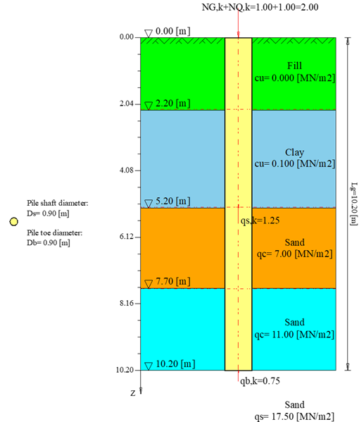 Bearing Capacity of Single Pile or Pile Wall Catalogue by GEO ToolsGEO Tools within ELPLA package (ELastic PLAte) is a program used for analyzing various problems in geotechnical engineering. One of its key applications is the evaluation of the bearing capacity of a single pile or a pile wall. The load–settlement curve of the pile can be determined according to: